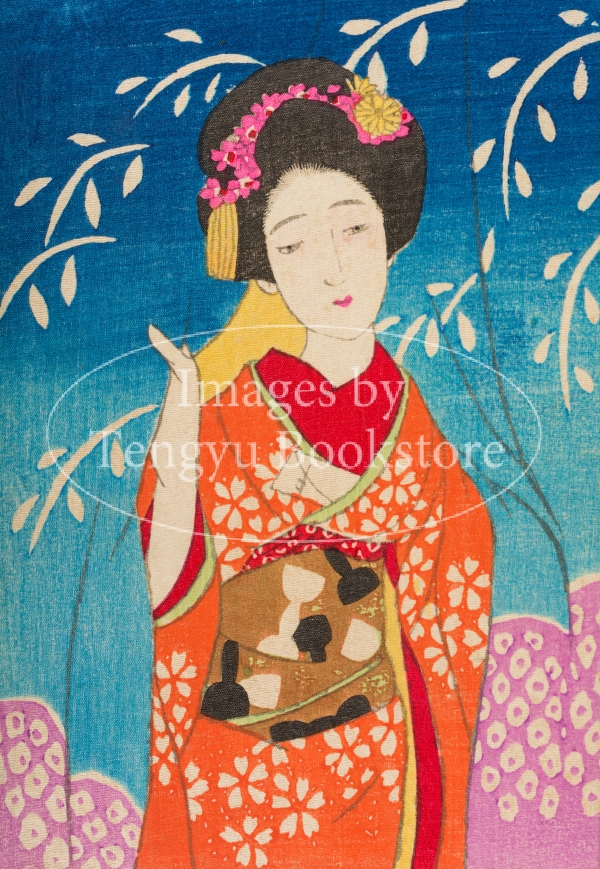 情緒ある舞妓や芸妓の姿を、色鮮やかに印刷した美しい木版画です。