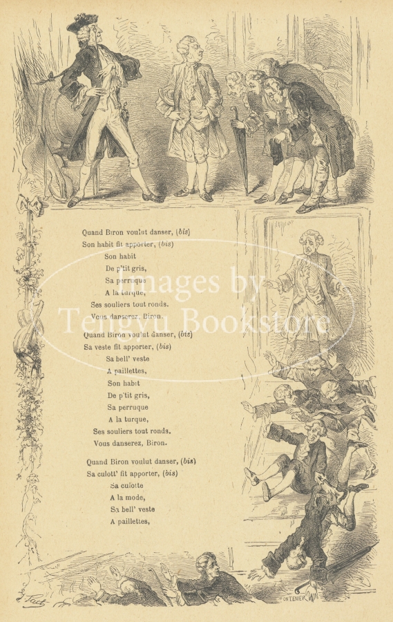19世紀末のフランスで刊行されたシャンソン・ポピュレール詩集の挿絵。シャンソン・ポピュレールとは、フランスで古くから歌い親しまれてきた民衆歌謡曲のこと。