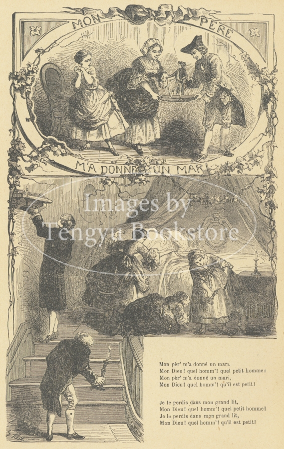 19世紀末のフランスで刊行されたシャンソン・ポピュレール詩集の挿絵。シャンソン・ポピュレールとは、フランスで古くから歌い親しまれてきた民衆歌謡曲のこと。