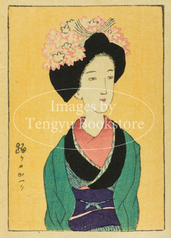 情緒ある舞妓や芸妓の姿を、色鮮やかに印刷した美しい木版画です。