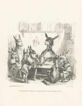 19世紀フランスの挿絵画家J.J.グランヴィル(1803-1847)の代表作「動物たちの私生活及び公生活の情景」の挿絵。