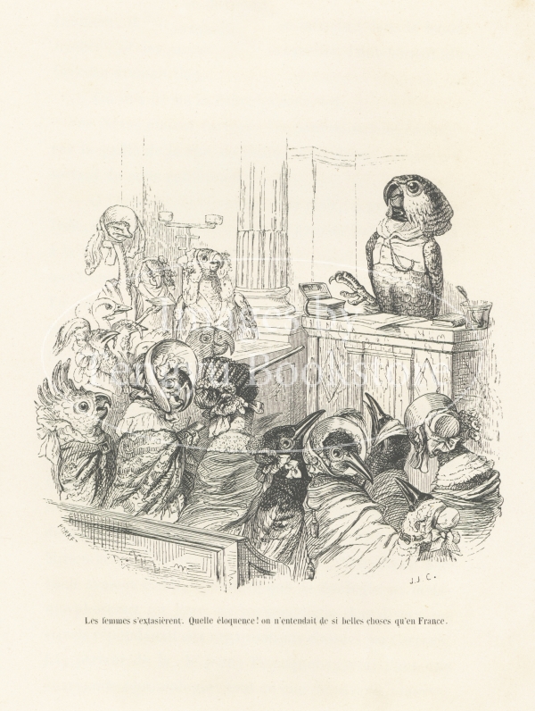 19世紀フランスの挿絵画家J.J.グランヴィル(1803-1847)の代表作「動物たちの私生活及び公生活の情景」の挿絵。