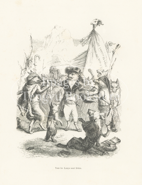 19世紀フランスの挿絵画家J.J.グランヴィル(1803-1847)の代表作「動物たちの私生活及び公生活の情景」の挿絵。