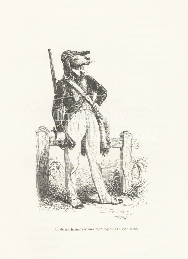 19世紀フランスの挿絵画家J.J.グランヴィル(1803-1847)の代表作「動物たちの私生活及び公生活の情景」の挿絵。