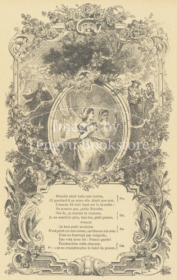 19世紀末のフランスで刊行されたシャンソン・ポピュレール詩集の挿絵。シャンソン・ポピュレールとは、フランスで古くから歌い親しまれてきた民衆歌謡曲のこと。