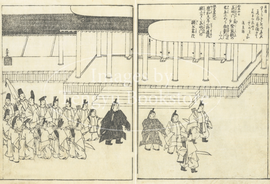 東海道とは、京都から愛知や静岡を通って江戸に至る街道のこと。本書は、当時数多くの名所図会を編纂した京都の文人 秋里籬島(あきさと りとう)によるもの。