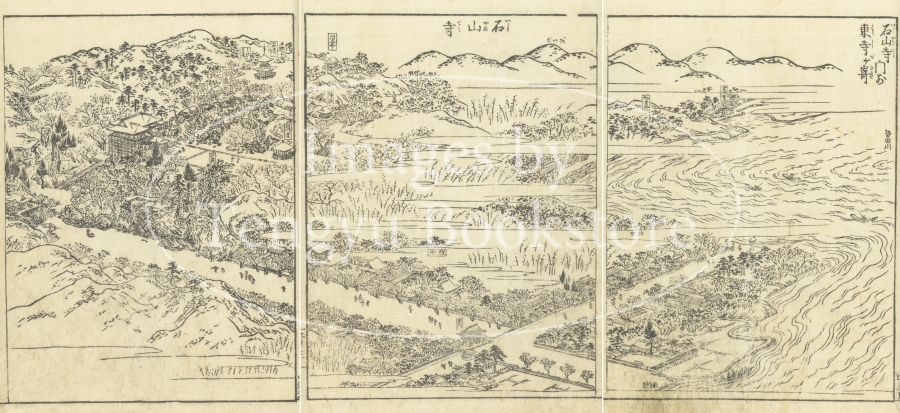 東海道とは、京都から愛知や静岡を通って江戸に至る街道のこと。本書は、当時数多くの名所図会を編纂した京都の文人 秋里籬島(あきさと りとう)によるもの。