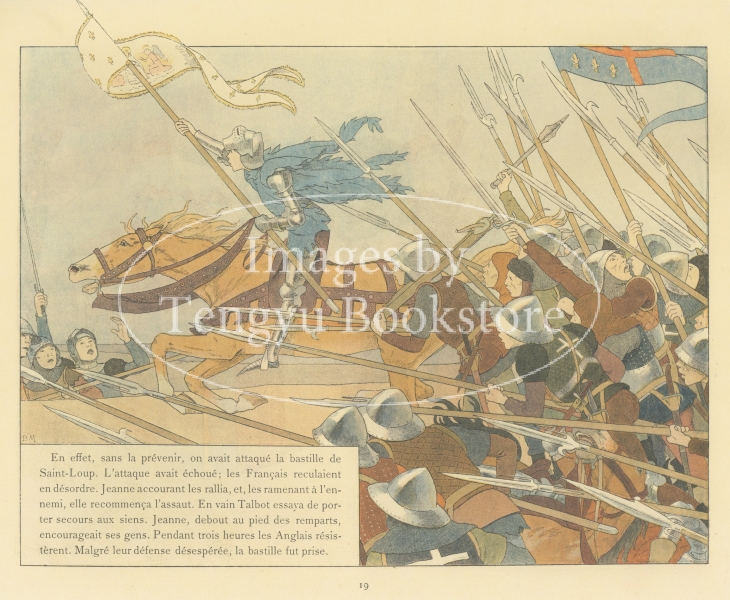 数々の絵本や挿絵本を手がけたブーテ・ド・モンヴェルがその独自の軽快な画風で、15世紀フランスに現れた救国の英雄ジャンヌ・ダルクを描いた本作は、19世紀末フランス挿絵本の中でも有数の傑作とされています。