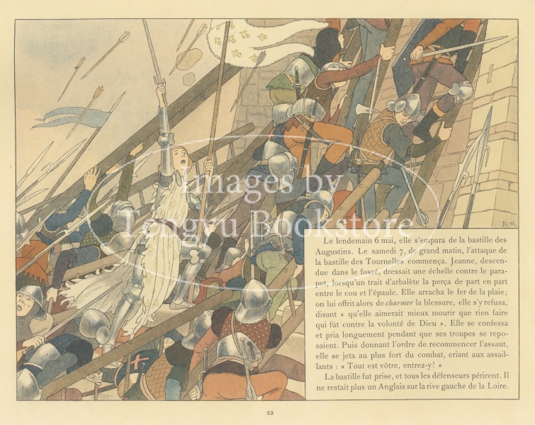 数々の絵本や挿絵本を手がけたブーテ・ド・モンヴェルがその独自の軽快な画風で、15世紀フランスに現れた救国の英雄ジャンヌ・ダルクを描いた本作は、19世紀末フランス挿絵本の中でも有数の傑作とされています。