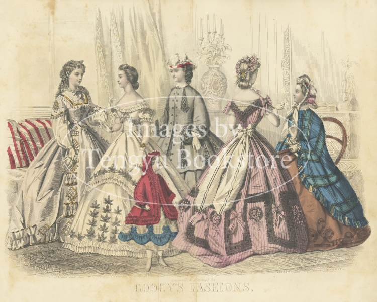19世紀アメリカの婦人雑誌ゴーディズ・レディーズ・ブック収録のファッション・プレート。
