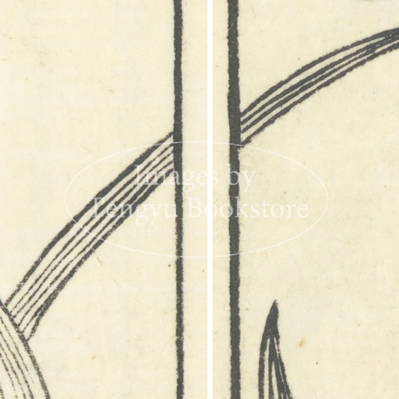 本来は2枚に分けて描かれた作品であるため、色味や図案の整合に若干の不統一があることをご了承ください。
