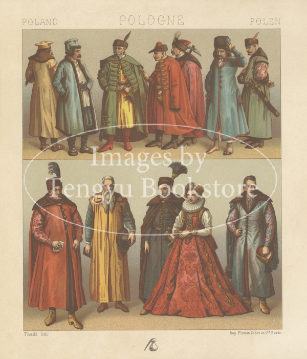 多色刷石版によってカラー印刷された、世界の歴史的衣装や民族衣装の図は、資料的な価値はもちろん、美術的にも評価の高い貴重なイラストです。