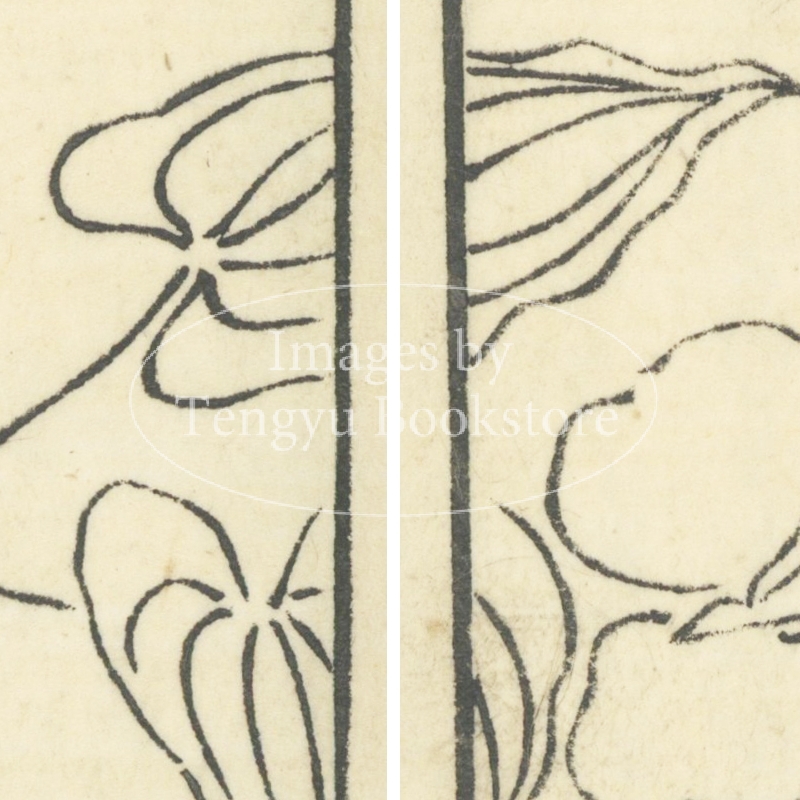本来は2枚に分けて描かれた作品であるため、色味や図案の整合に若干の不統一があることをご了承ください。