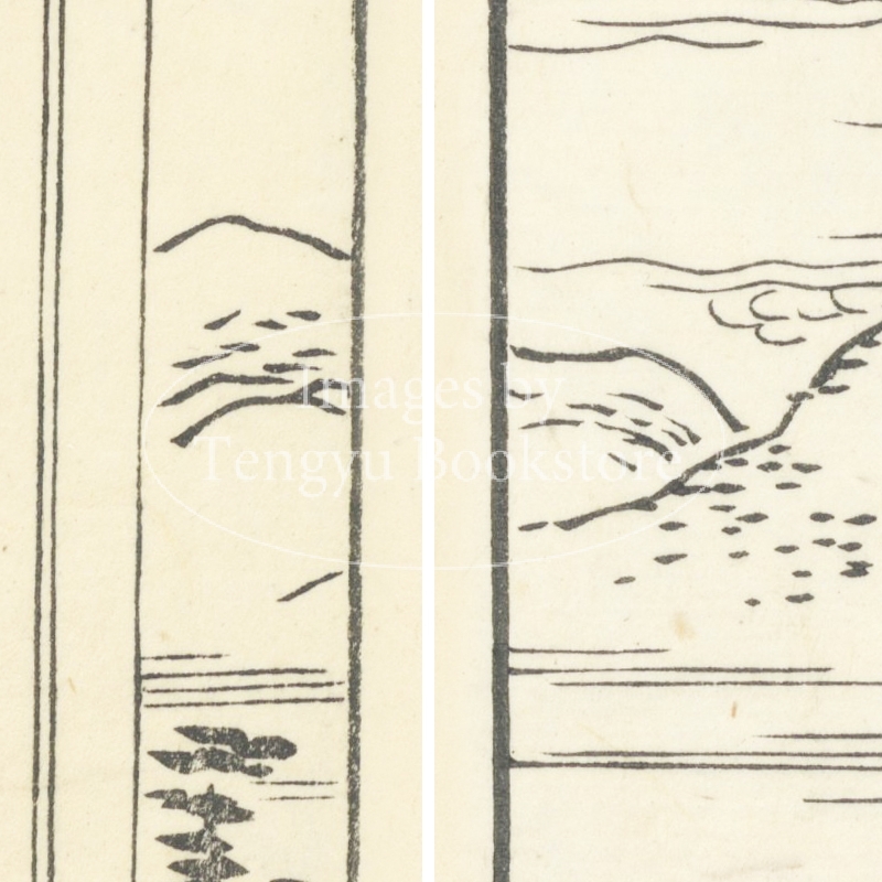 本来は2枚に分けて描かれた作品であるため、色味や図案の整合に若干の不統一があることをご了承ください。