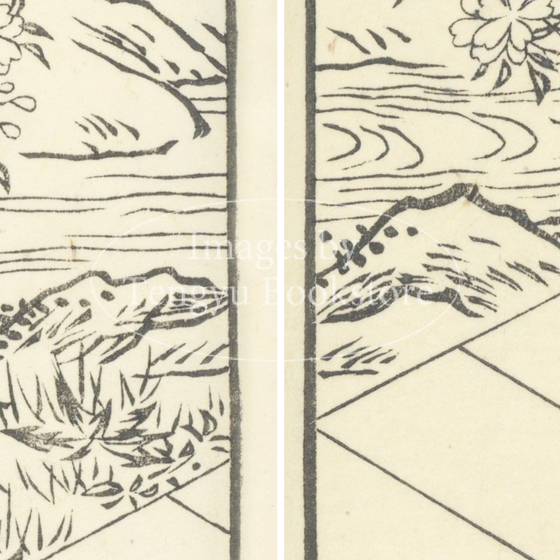 本来は2枚に分けて描かれた作品であるため、色味や図案の整合に若干の不統一があることをご了承ください。