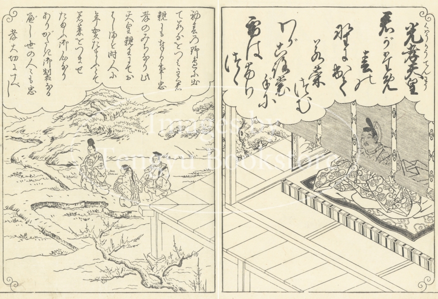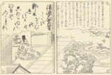 江戸前期から中期にかけて活躍した京都の絵師 西川祐信(にしかわ すけのぶ:1671-1750)による百人一首の絵本「花陽百人一首大成」からの一枚。