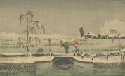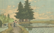 小林清親に師事し、短命の作家ながらも明治初期に活躍した井上安治の木版画集の中の1枚です。