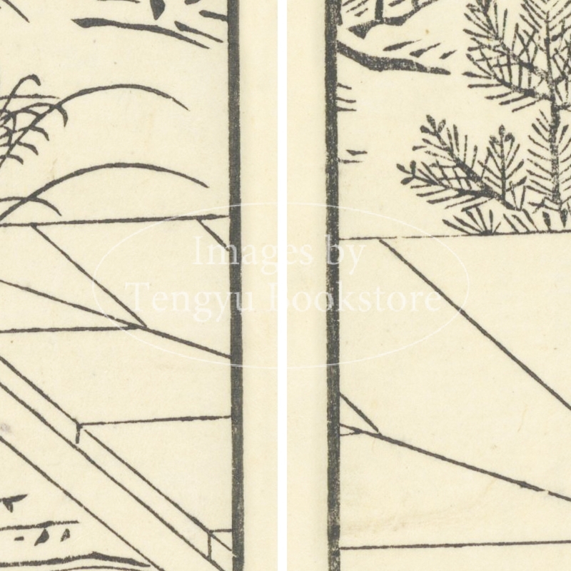 本来は2枚に分けて描かれた作品であるため、色味や図案の整合に若干の不統一があることをご了承ください。
