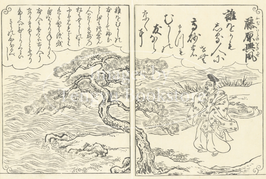 江戸前期から中期にかけて活躍した京都の絵師 西川祐信(にしかわ すけのぶ:1671-1750)による百人一首の絵本「花陽百人一首大成」からの一枚。