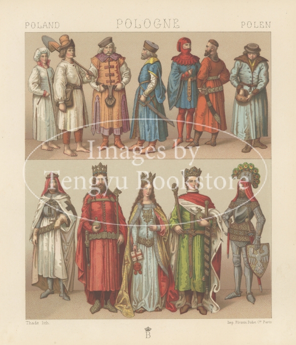 多色刷石版によってカラー印刷された、世界の歴史的衣装や民族衣装の図は、資料的な価値はもちろん、美術的にも評価の高い貴重なイラストです。