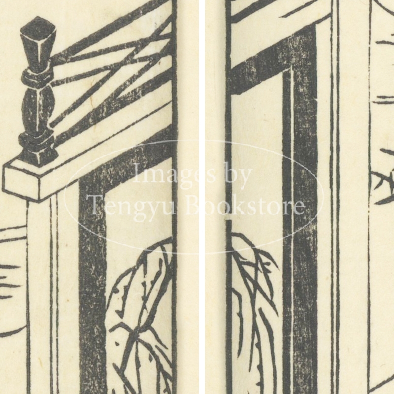 本来は2枚に分けて描かれた作品であるため、色味や図案の整合に若干の不統一があることをご了承ください。