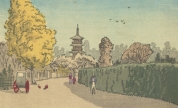小林清親に師事し、短命の作家ながらも明治初期に活躍した井上安治の木版画集の中の1枚です。