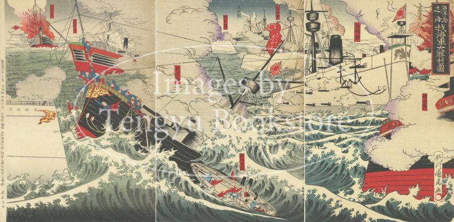 日本海軍と清国海軍の艦隊戦「黄海海戦」を題材にしたもの。