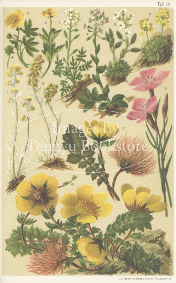 20世紀初頭にドイツで刊行された「Coloured Vade-Mecum to the Alpine Flora (高山植物便覧)」からの一枚。