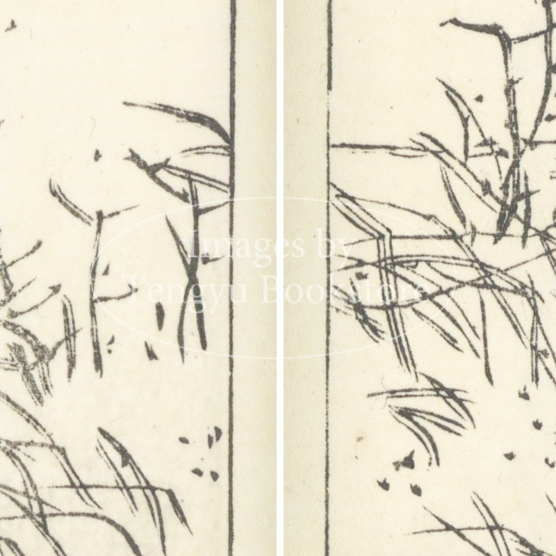 本来は2枚に分けて描かれた作品であるため、色味や図案の整合に若干の不統一があることをご了承ください。