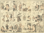 いわゆる「謎かけ」と呼ばれる三段謎を集めた草双紙で、上中下の三段に区切った枠の中にお題と答えを絵入りで描いたもの。「上段」とかけて「中段」と解く、その心は「下段」と読む。