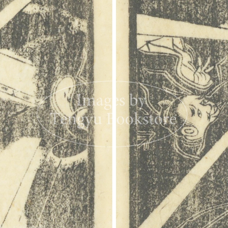 本来は2枚に分けて描かれた作品であるため、色味や図案の整合に若干の不統一があることをご了承ください。