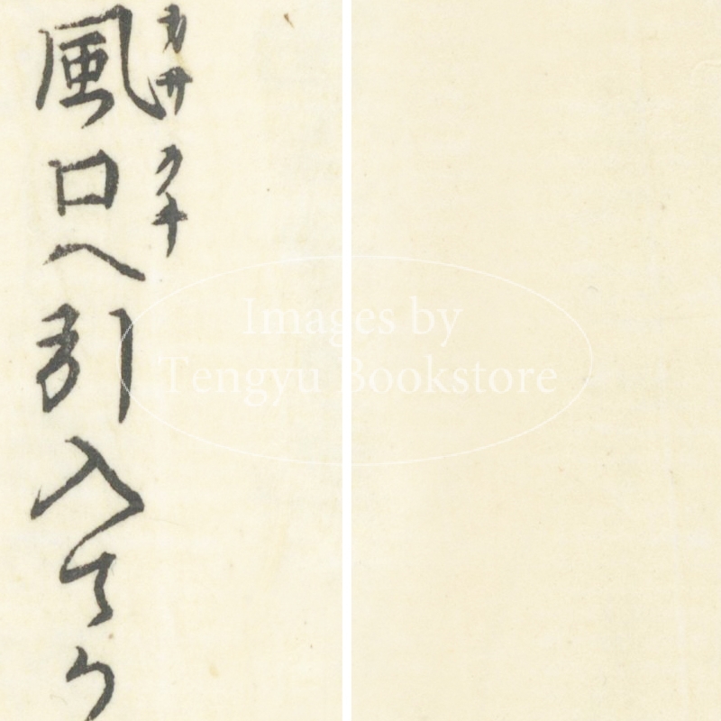 本来は2枚に分けて描かれた作品であるため、色味や図案の整合に若干の不統一があることをご了承ください。