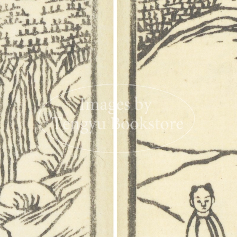 明代中国で編纂された唐代中国詩の選集「唐詩選」に、江戸時代後期の文学者 高井蘭山による解説と北斎ほか当時の絵師たちが挿絵を加えた挿絵本「唐詩選画本(とうしせんえほん)」中の挿絵。