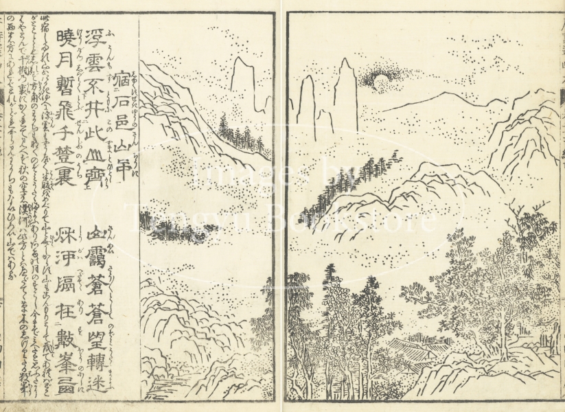 明代中国で編纂された唐代中国詩の選集「唐詩選」に、江戸時代後期の文学者 高井蘭山による解説と北斎ほか当時の絵師たちが挿絵を加えた挿絵本「唐詩選画本(とうしせんえほん)」中の挿絵。