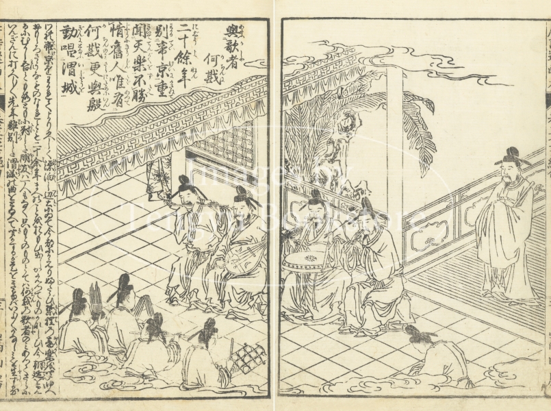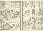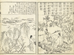 明代中国で編纂された唐代中国詩の選集「唐詩選」に、江戸時代後期の文学者 高井蘭山による解説と北斎ほか当時の絵師たちが挿絵を加えた挿絵本「唐詩選画本(とうしせんえほん)」中の挿絵。