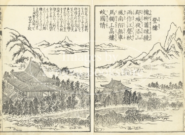 明代中国で編纂された唐代中国詩の選集「唐詩選」に、江戸時代後期の文学者 高井蘭山による解説と北斎ほか当時の絵師たちが挿絵を加えた挿絵本「唐詩選画本(とうしせんえほん)」中の挿絵。