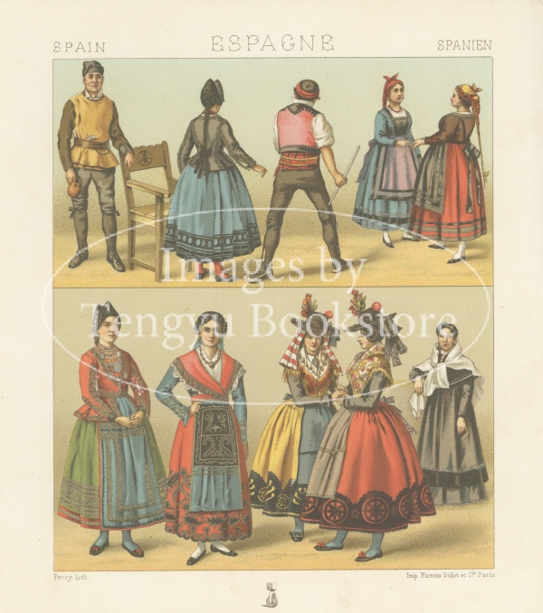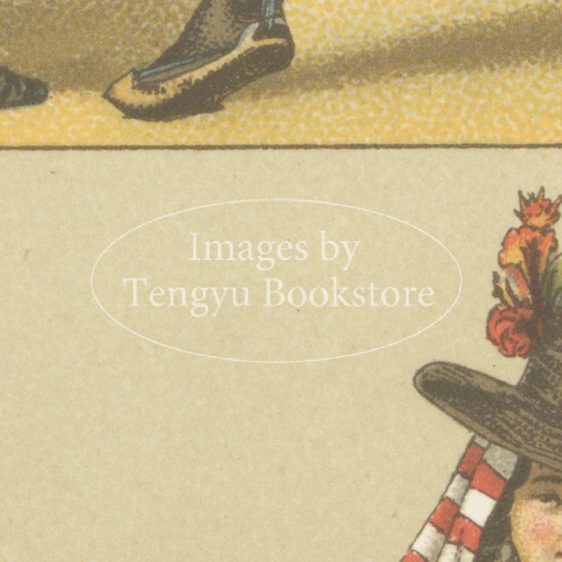 多色刷石版によってカラー印刷された、世界の歴史的衣装や民族衣装の図は、資料的な価値はもちろん、美術的にも評価の高い貴重なイラストです。