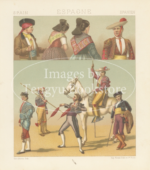 多色刷石版によってカラー印刷された、世界の歴史的衣装や民族衣装の図は、資料的な価値はもちろん、美術的にも評価の高い貴重なイラストです。