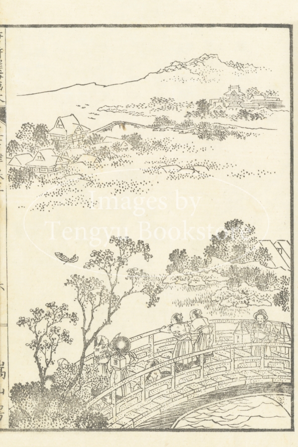 明代中国で編纂された唐代中国詩の選集「唐詩選」に、江戸時代後期の文学者 高井蘭山による解説と北斎ほか当時の絵師たちが挿絵を加えた挿絵本「唐詩選画本(とうしせんえほん)」中の挿絵。