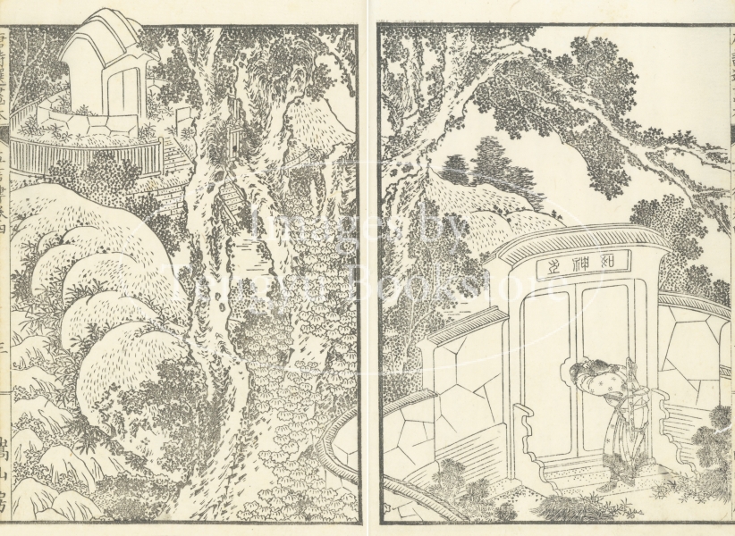 明代中国で編纂された唐代中国詩の選集「唐詩選」に、江戸時代後期の文学者 高井蘭山による解説と北斎ほか当時の絵師たちが挿絵を加えた挿絵本「唐詩選画本(とうしせんえほん)」中の挿絵。