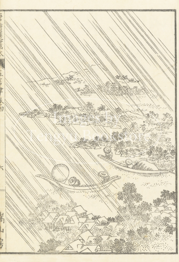明代中国で編纂された唐代中国詩の選集「唐詩選」に、江戸時代後期の文学者 高井蘭山による解説と北斎ほか当時の絵師たちが挿絵を加えた挿絵本「唐詩選画本(とうしせんえほん)」中の挿絵。