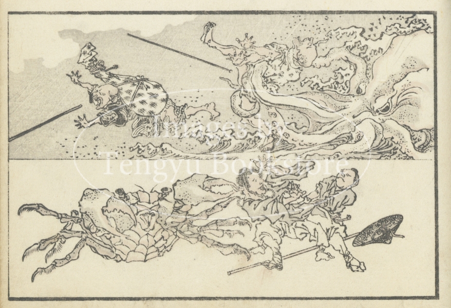 優れた筆力と流派に留まらない独自の画風で海外でも人気の高い幕末-明治期の絵師、河鍋暁斎(1831-1889)の絵手本集「暁斎鈍画」の一図。