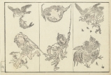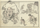 優れた筆力と流派に留まらない独自の画風で海外でも人気の高い幕末-明治期の絵師、河鍋暁斎(1831-1889)の絵手本集「暁斎鈍画」の一図。