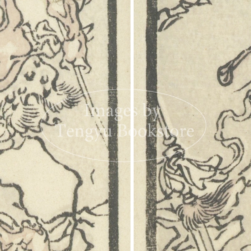本来は2枚に分けて描かれた作品であるため、色味や図案の整合に若干の不統一があることをご了承ください。
