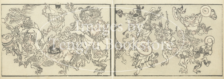 優れた筆力と流派に留まらない独自の画風で海外でも人気の高い幕末-明治期の絵師、河鍋暁斎(1831-1889)の絵手本集「暁斎鈍画」の一図。