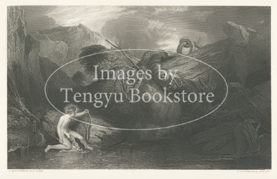19世紀イギリスを代表する画家J.M.W.ターナーの版画作品集「ターナー・ギャラリー」中の1枚。油彩をはじめ、水彩や、挿絵版画等を手掛けた風景画の巨匠ターナーの死後に刊行された本書は、鋼版画に起こしたターナー作品を120点収録した、19世紀版画挿絵本の名品です。