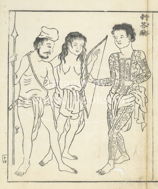江戸時代中期の天文・地理学者 西川如見(にしかわ じょけん:1648-1724)による世界の民族図誌「万国人物図説」(四十二国人物図説)収録の挿絵。