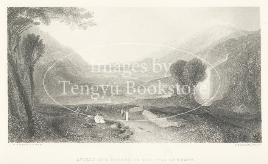 19世紀イギリスを代表する画家J.M.W.ターナーの版画作品集「ターナー・ギャラリー」中の1枚。油彩をはじめ、水彩や、挿絵版画等を手掛けた風景画の巨匠ターナーの死後に刊行された本書は、鋼版画に起こしたターナー作品を120点収録した、19世紀版画挿絵本の名品です。