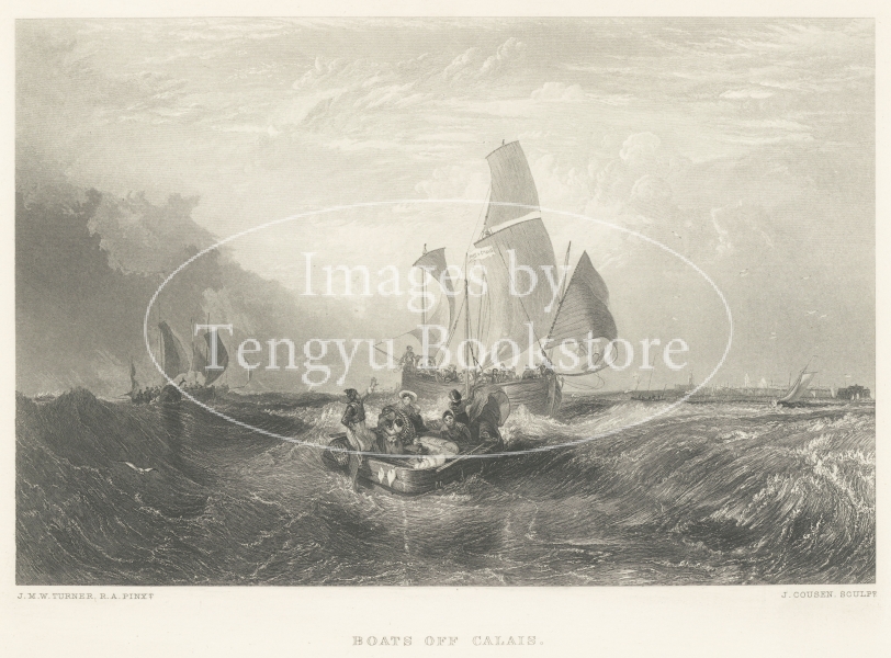 19世紀イギリスを代表する画家J.M.W.ターナーの版画作品集「ターナー・ギャラリー」中の1枚。油彩をはじめ、水彩や、挿絵版画等を手掛けた風景画の巨匠ターナーの死後に刊行された本書は、鋼版画に起こしたターナー作品を120点収録した、19世紀版画挿絵本の名品です。