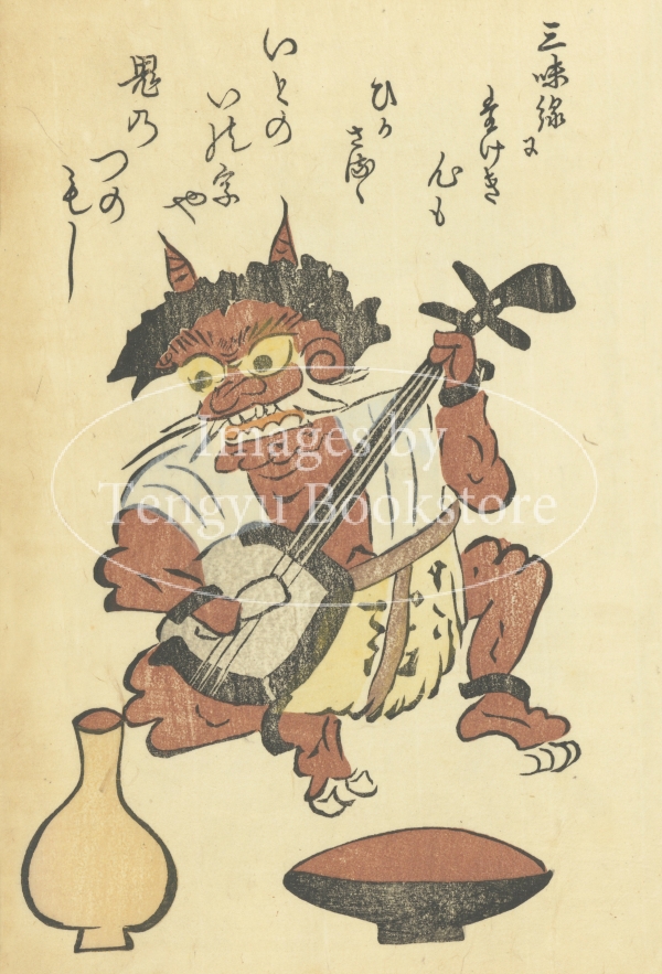 江戸初期の滋賀県大津で描かれ始めたとされる民画「大津絵」の代表的な絵柄に、狂歌を添えた狂歌絵本「大津みやげ」中の1枚。